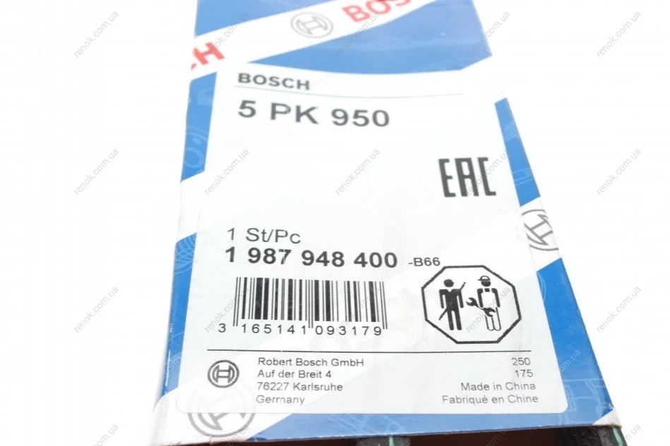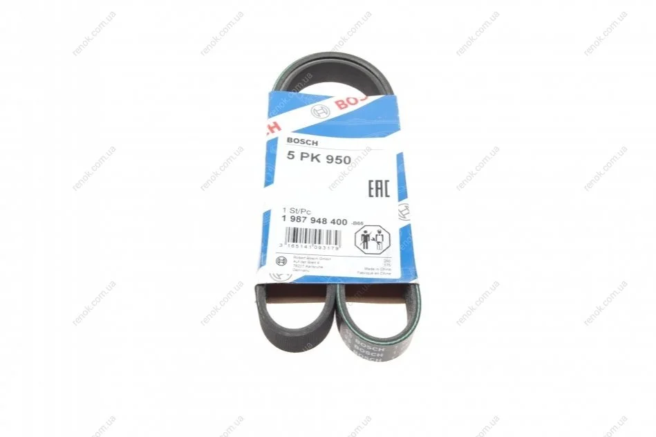 Ремінь генератора Audi A6 5.0 08-10/BMW 3 (E46) 1.6/1.8i 98-02/Suzuki Jimny 1.5 18- (5PK950) BOSCH 1987948400 (07L903137C, 0K9AC15907, 11281433948)