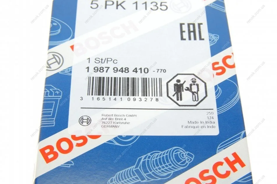 Ремінь генератора Renault Kangoo 1.5 dCi (5PK1135) BOSCH 1 987 948 410 (8200020924, 96010219, 575087)