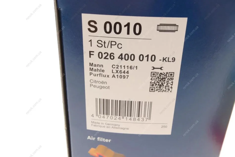 Фільтр повітряний Citroen Xsara 1.4i/1.6i/2.0HDI 99-05 BOSCH F026400010 (1444TF, 1444R3, 1444R1)