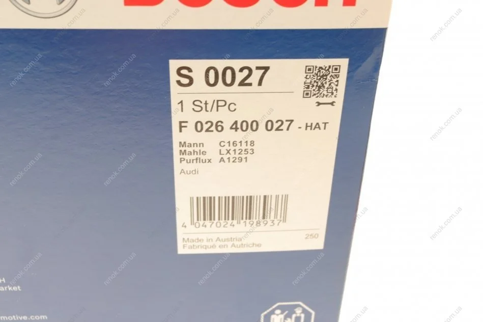 Аналоги "F026400027 BOSCH":