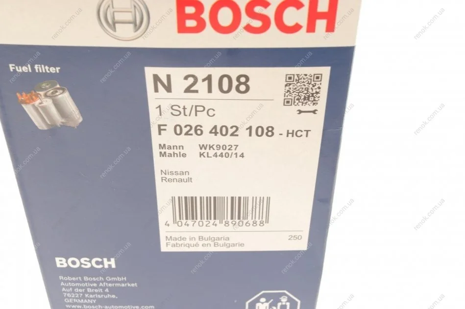 Фільтр паливний Nissan X-Trail/Renault Koleos 2.0dci 07- BOSCH F026402108 (16400JY09E, 16400JD50B, 16400JY00B)