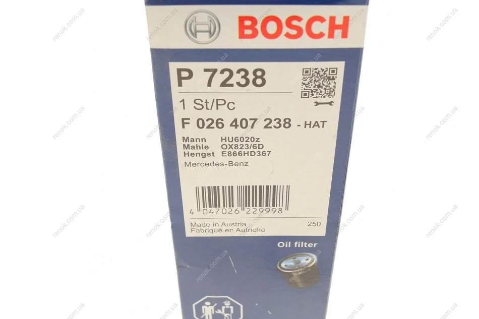 Фільтр масляний MB E-class (W213/S213) 2.0 16- BOSCH F026407238 (a6541801100, A6541840025, 6541801100)