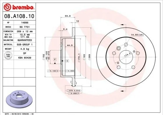 Гальмівний диск BM BREMBO 08.A108.10