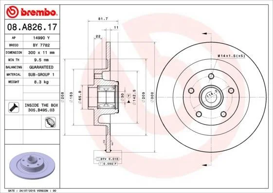 Тормозной диск BREMBO 08.A826.17 (402020003R, 432000015R, 402022291R)