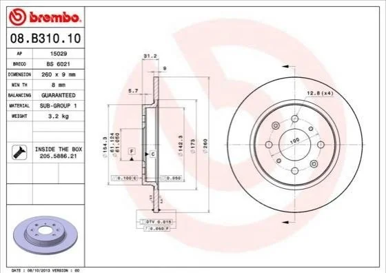 Диск гальмівний BREMBO 08.B310.10 (42510TM8G00)