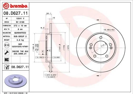 Гальмівний диск BREMBO 08.D627.11 (58411G4300)