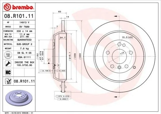 Гальмівний диск BM BREMBO 08.R101.11 (1644231212, 1644230512, A1644230512)