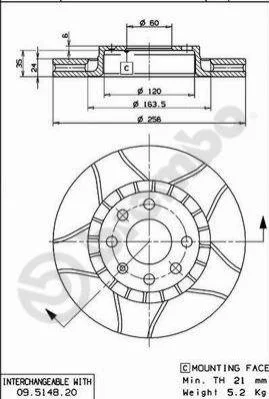 Диск гальмівний BREMBO 09.5148.76 (569042, 569001)
