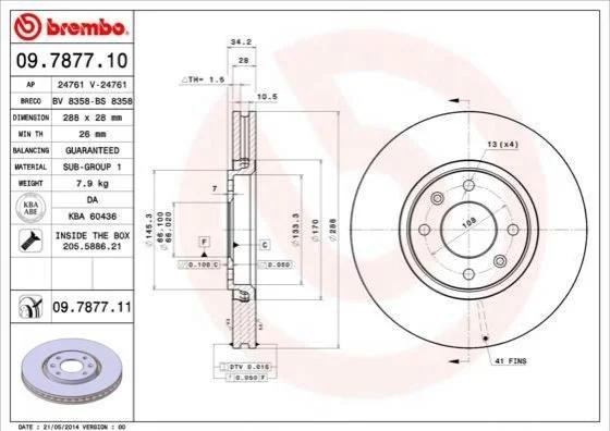 Гальмівний диск BREMBO 09.7877.11 (4249H1, 4246T8, 4246R6)