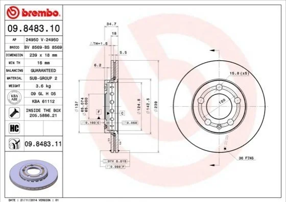 Гальмівний диск BM BREMBO 09.8483.11