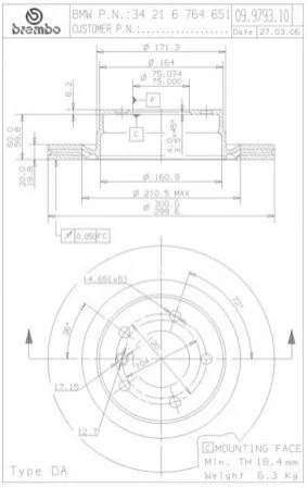 Гальмівний диск BM BREMBO 09.9793.11