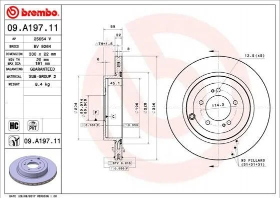Диск гальмівний BREMBO 09.A197.11 (4615A025, 4615A186)