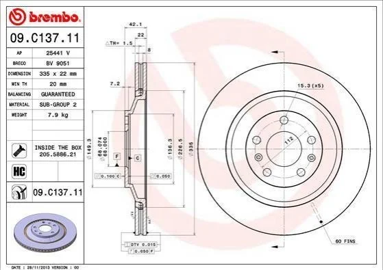 Гальмівний диск BREMBO 09.C137.11 (4E0615601L, 3D0615601C, 3D0615601)