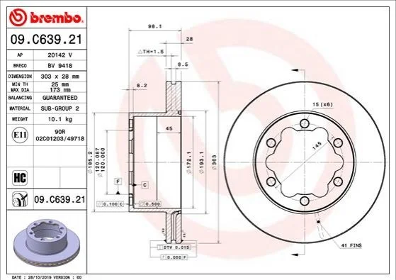 Гальмівний диск BREMBO 09.C639.21 (2N0615601A, 2N0615601C)