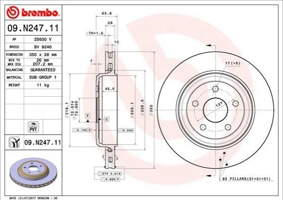 Диск гальмівний BREMBO 09.N247.11 (5151512AC, 5181512AB, 5181512AC)