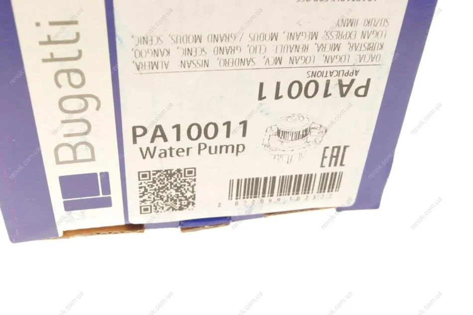 Помпа системи охолодження Renault Kangoo/Megane/Scenic/Clio/Nissan Almera/Kubistar/Micra 1.5dCi 01- Bugatti PA10011 (8200035221, 8660003254, 2101000Q0E)