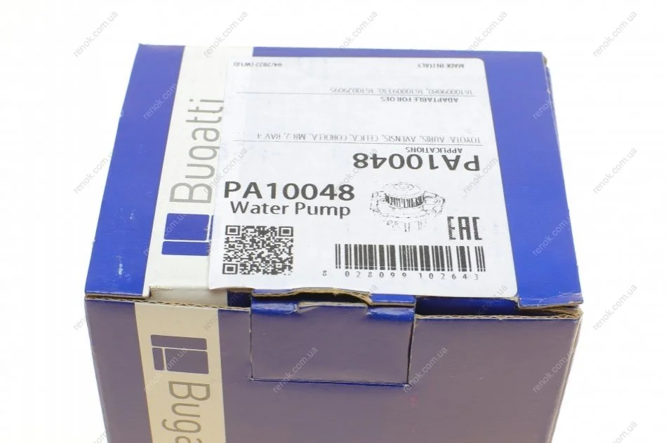 Помпа води Toyota Avensis/Corolla/Matrix 1.4-1.8/VVT-i/1.4-1.6 16V/1.8 4WD 00-14 (R/B) (6 лоп) Bugatti PA10048 (1610009080, 1610009130, 1610009310)