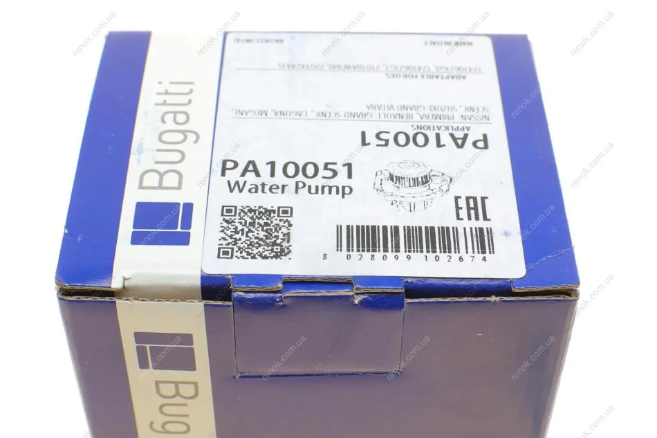 Помпа води Renault Megane/Laguna/Scenic/Nissan 1.9dCi/Suzuki Grand Vitara 1.9DDiS 02- Bugatti PA10051 (1741067JG0, 21010AW300, 7701474435)