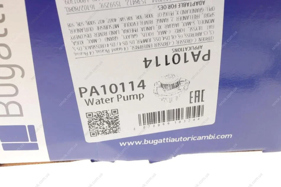 Помпа води Citroen C4-C8/Jumper/Peugeot 308/407/Ford Focus 2.0-2.2HDi/D/TDCi 06- (B/B)(8 лоп) Bugatti PA10114 (1201H7, 1201J6, 1427914)