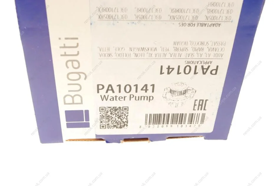 Помпа води Audi A1/A3/Skoda Octavia/SuperB/Rapid/VW Golf V/VI/Passat 1.4TFSI/TSI 07- (B/B) (7 лоп) Bugatti PA10141 (03C121005N, 03C121005NX, 03C121005R)