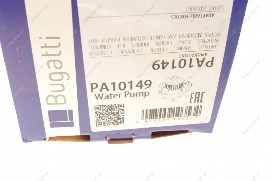 Помпа води Jeep Compass/Mitsubishi Lancer VIII/Outlander/Peugeot 4007 1.8/2.0/2.4 08- (B/B)(6 лоп) Bugatti PA10149 (1201J9, 1201K4, 1300A083)