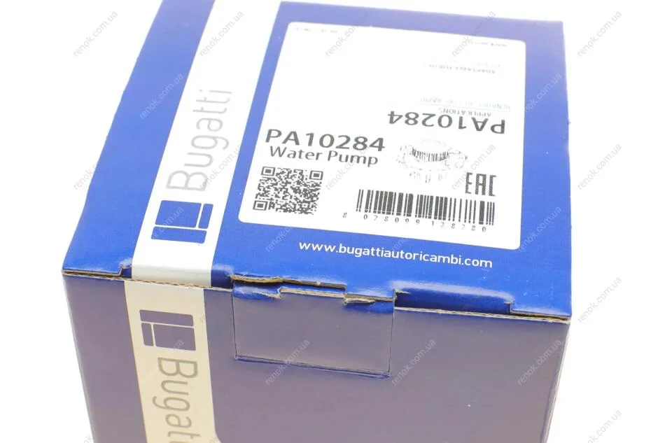 Помпа води Renault 19 1.2/1.4 88-95/Clio/Rapid 1.2/1.4 90-98 (B/B) (8 лоп) Bugatti PA10284 (7700736091, 7701633125, 1334231)