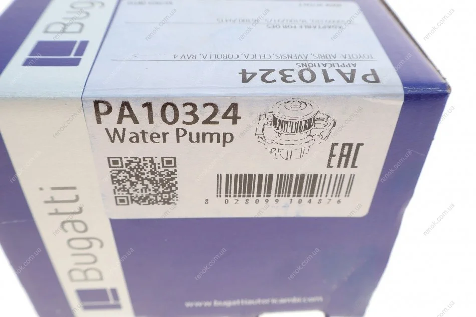 Помпа води Toyota Avensis 00-08/Corolla 1.4-1.8 VVT-i 99-07 Bugatti PA10324 (1610009310, 1610029175, 1610029415)