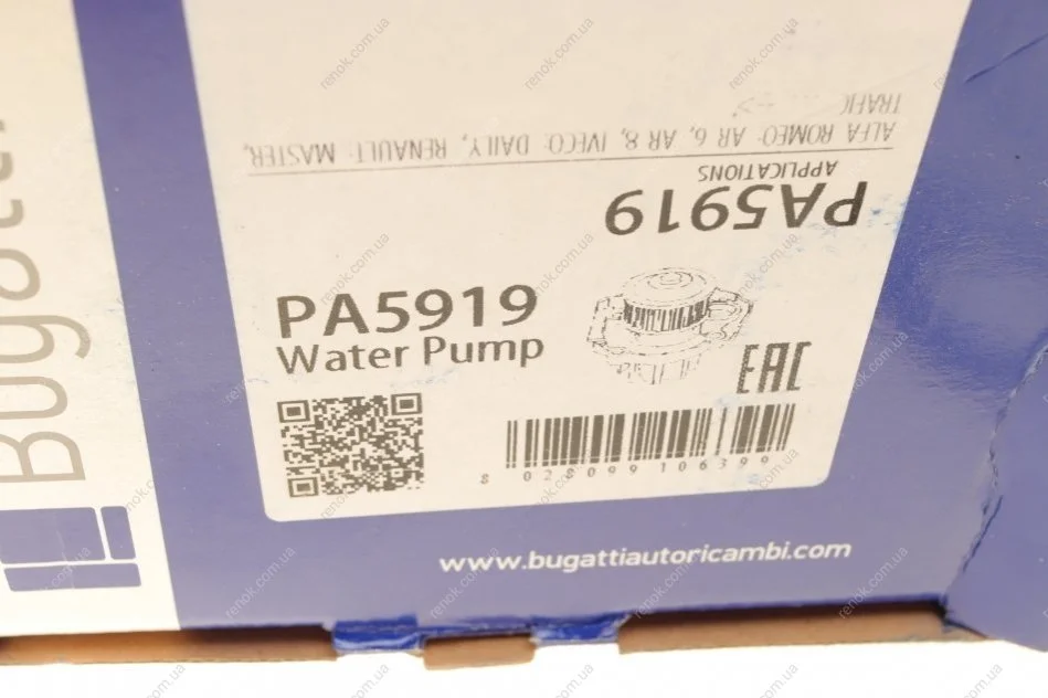 Помпа води Renault Master/Trafic/Iveco Daily 2.5D 79-01 Bugatti PA5919 (4714636, 4754850, 4764761)