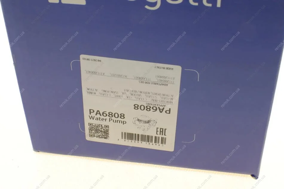 Помпа води MB C-class (W202)/E-class (W124/W210) 1.8-2.2 92-00 (M111)/Ssangyong Kyron 2.3 10- Bugatti PA6808 (111200400180, A111200400180, 1112004001)