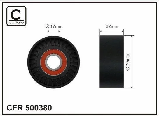 70X17X32 Ролик (сам ролик) натяжний паса генератора BMW 1 (F20), 1 (F21), 2 (F22, F87), 2 (F23), 3 (F30, F80), 3 (F31), 3 GRAN TURISMO (F34), 4 (F32, F82), 4 (F33, F83), 4 GRAN COUPE (F36), 5 (F10), 5 (F11) 3.0 01.08- CAFFARO 500380 (11287599097, 11288604266, 7599097)