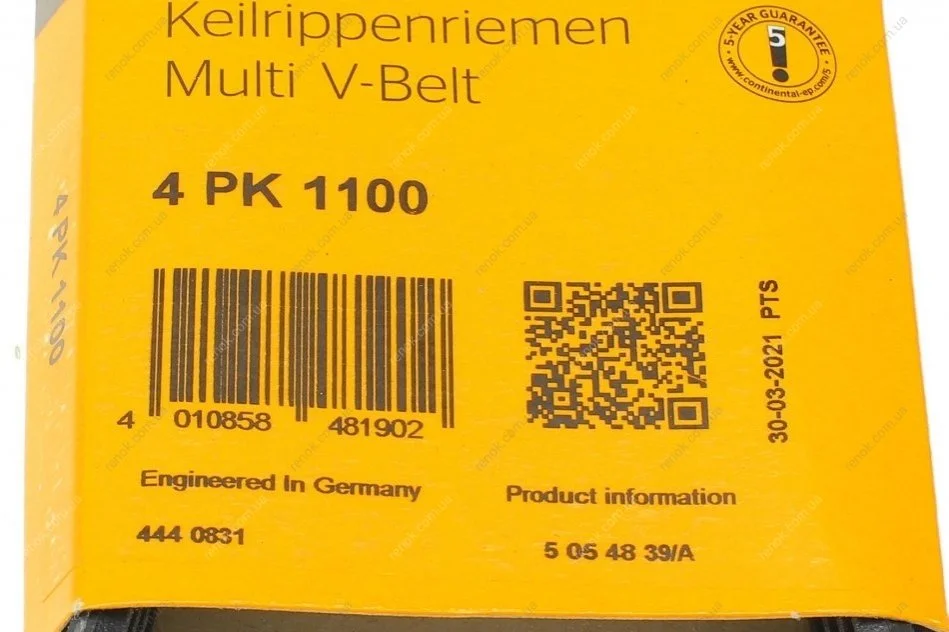Ремінь генератора Haval H5 2.4 10-/Toyota Land Cruiser Prado 2.7 95-02/Hiace 98-06/Fiat/Lancia/Nissa Contitech 4PK1100 (117200M310, 117200M313, 117200M312)