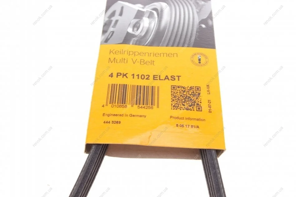 Ремінь генератора 4PK1102 Ducato/Jumper/Boxer/Daily 3.0HDi 06- Contitech 4PK1102 ELAST (6453XY, 6453TT, 504087247)