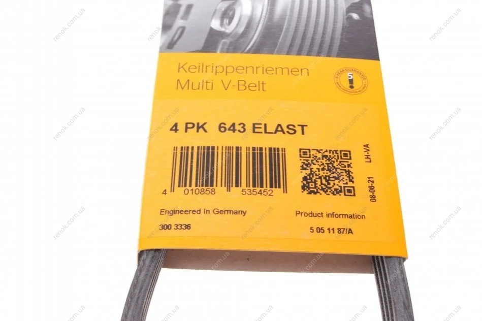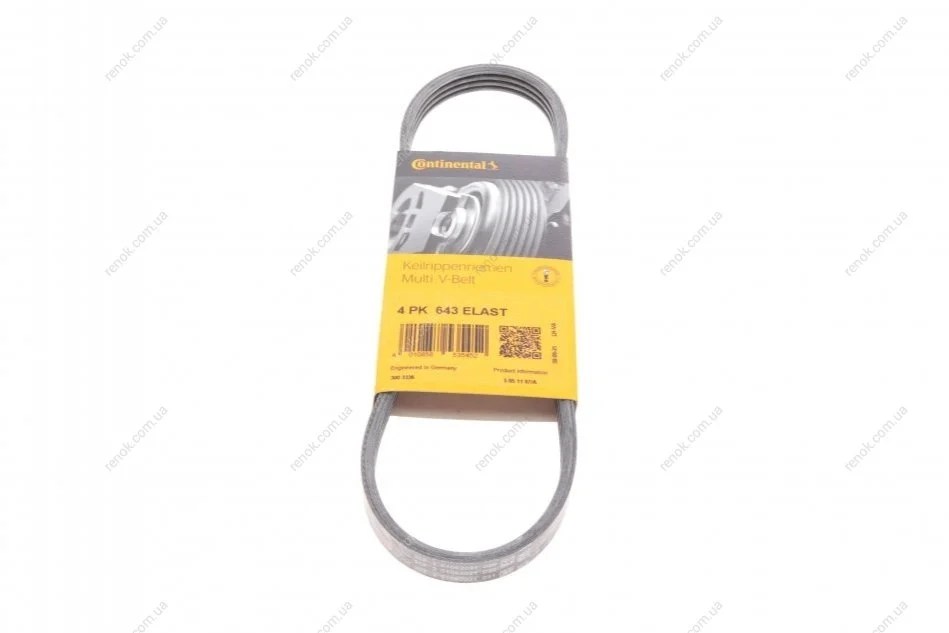 Ремінь генератора Opel Astra J/Insignia A 1.6/1.8 08-17/Alfa Romeo 159 1.8MPI 05-11 Contitech 4PK643 ELAST
