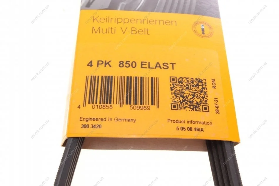 Ремінь генератора BMW 3 (E90)/5 (E60)/7 (E65/E66/E67) 2.5/3.0D 02-11 (4PK850) Contitech 4PK850ELAST (977132D100, 2521226021, 977132D510)
