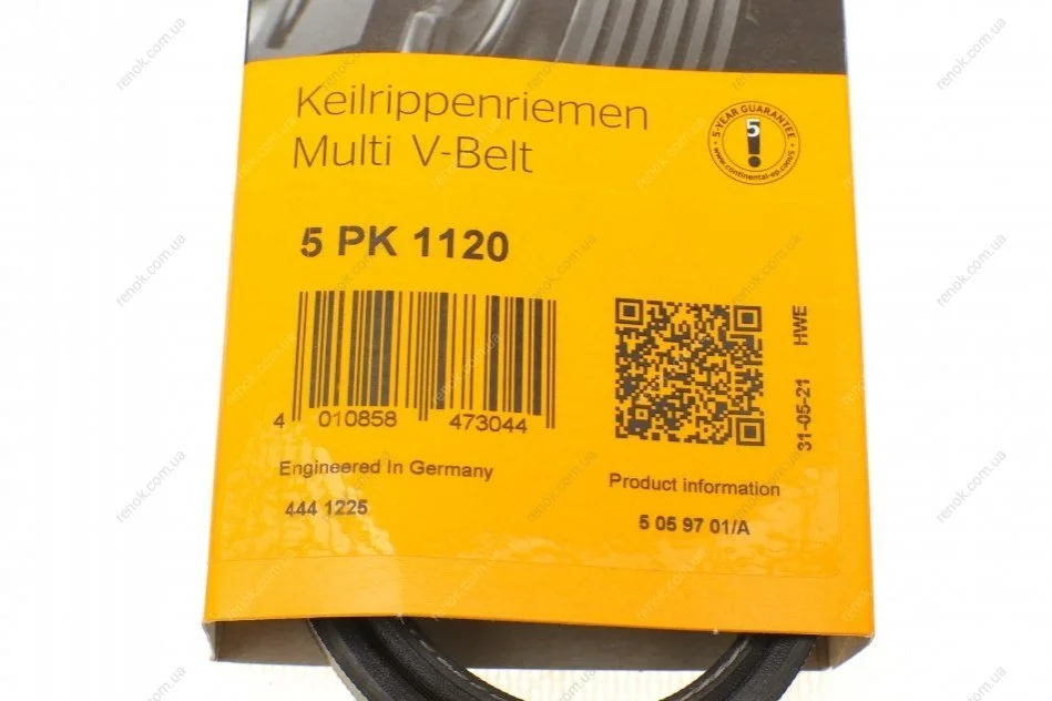 Ремінь генератора VW Touareg 4.2 FSI 06-18/Toyota Avensis/Camry/Corolla 1.8/2.0D 86-03 Contitech 5PK1120 (5717038000, 64552248190, 9091602207)