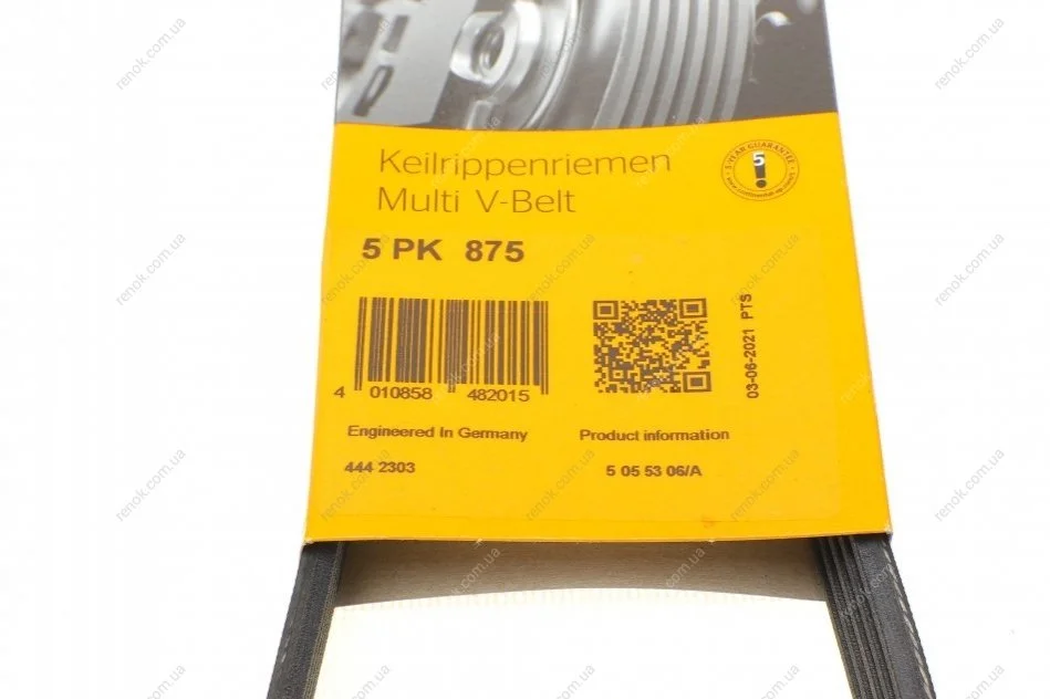 Ремінь генератора Renault Kangoo 1.2i 97-/Subaru Impreza 2.0 05-07/Nissan Pathfinder 4.0 05- Contitech 5PK875 (7700720452, 31110PK2004, 31110PK2003)