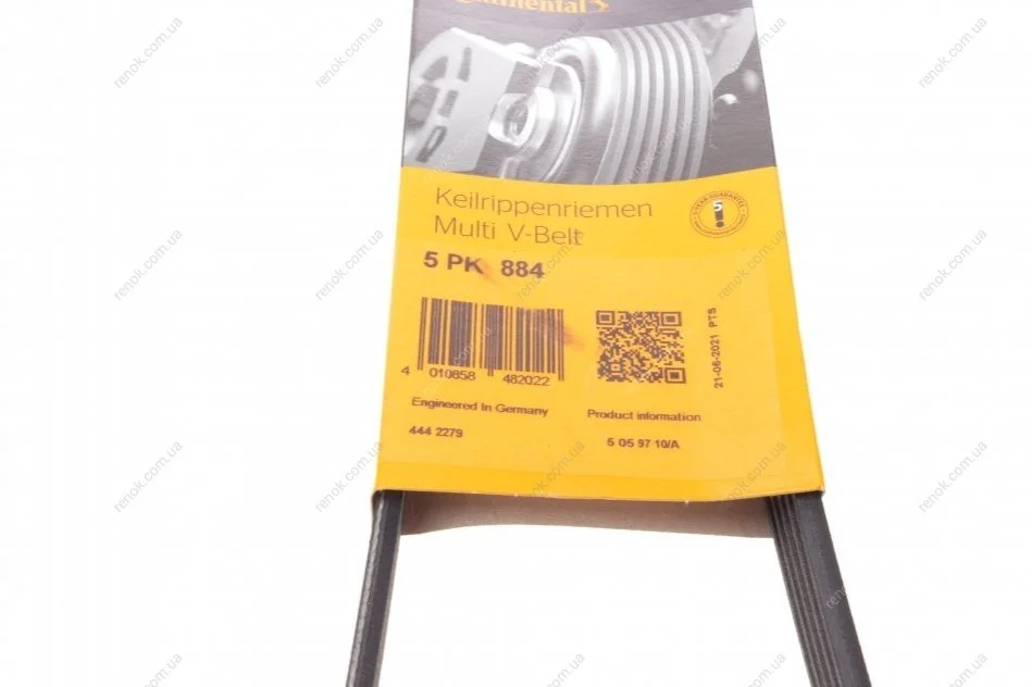 Ремінь генератора Ford Fiesta 1.8 DI 95-02/Toyota Rav4 2.0D 4WD 01-05 Contitech 5PK884 (7700734955, 7700733788, 96155377)
