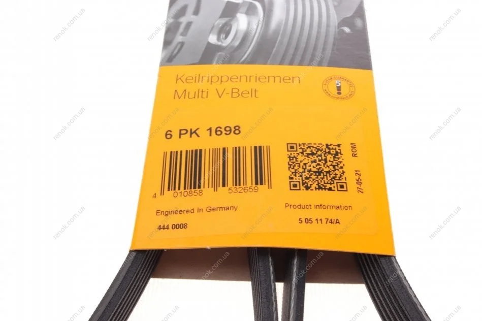 Ремінь генератора Skoda Fabia/VW Passat B6/B7 09-14/Citroen Berlingo/Peugeot 98-/BMW/Chevrolet 11- Contitech 6PK1698 (5750ZH, 5750GS, 117738)