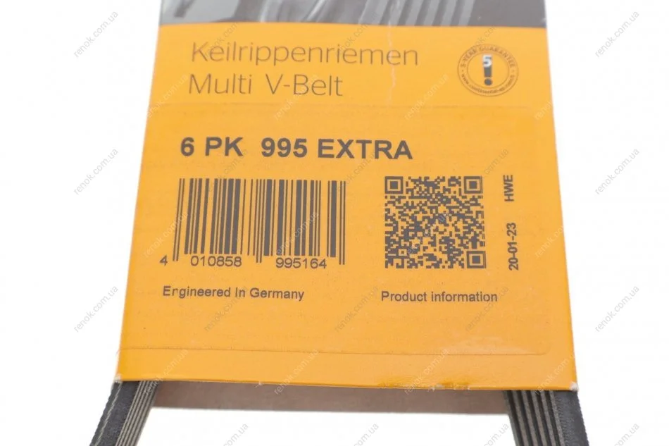 Ремінь генератора поліклиновий CONTINENTAL Contitech 6PK995 EXTRA