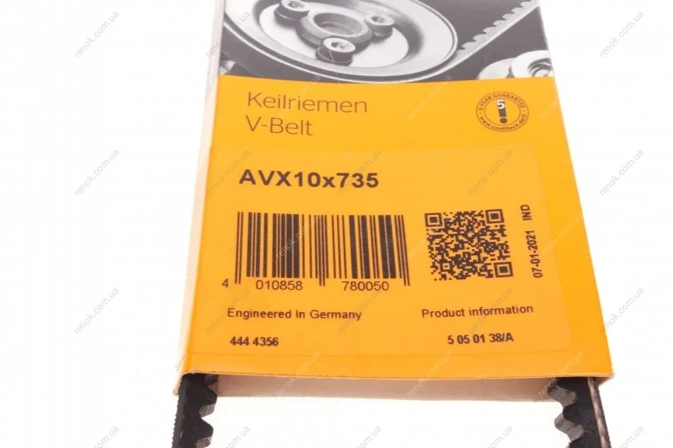 Ремінь генератора VW Golf II/Passat 1.5/1.6/1.8 83-91/Audi 75/80 1.6-1.9 68-91 Contitech AVX 10X735 (575046, 068903137F, 068903137Q)