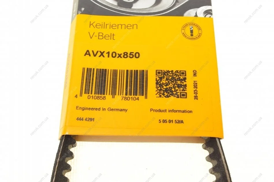 Ремінь генератора VW Passat/Golf 1.6-2.2 74-88/Toyota Corolla 1.2/2.0 72-85 Contitech AVX 10X850 (7700648156, 7700624262, 7700580482)