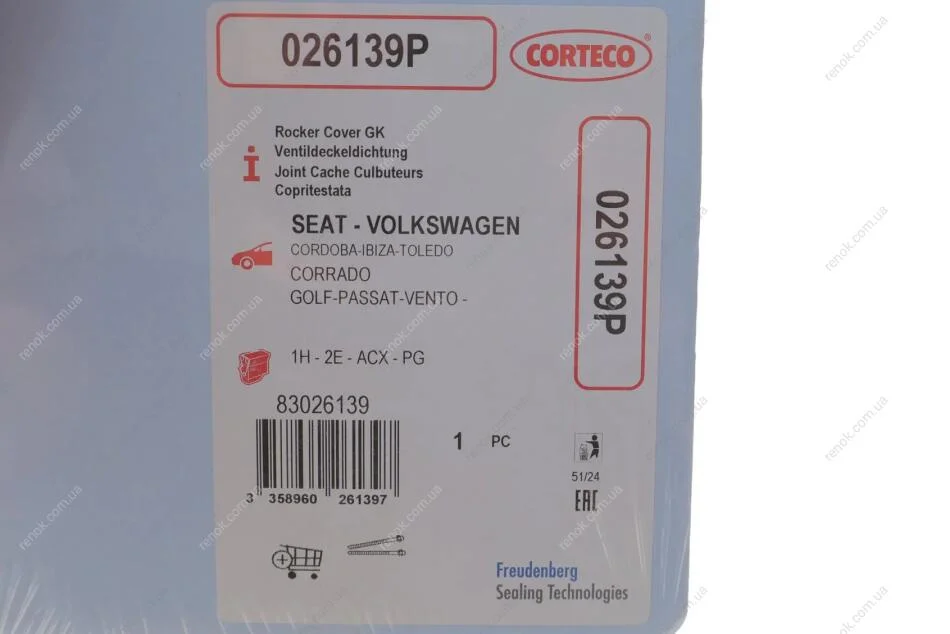 Прокладка кришки клапанів CORTECO 026139P (026103483F, 037103483A, 037103483C)