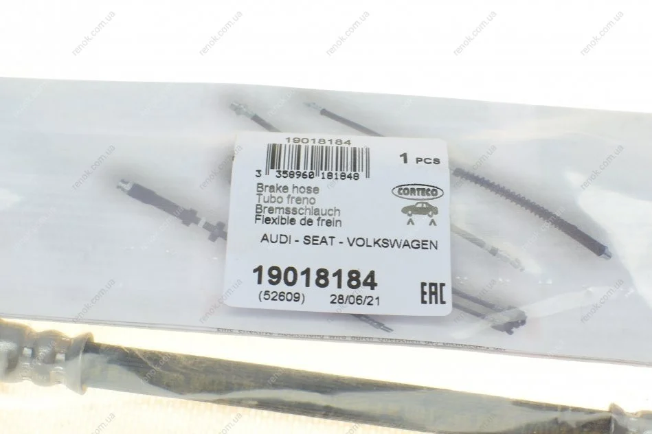 Шланг гальмівний (задній) VW T4 96-03/Golf II/Passat 96- CORTECO 19018184 (437611775, 893611775A)