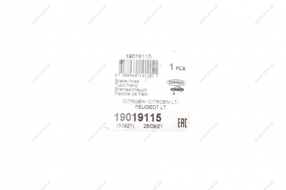 Шланг гальмівний (передній) Citroen Berlingo/Peugeot Partner 96- CORTECO 19019115 (480685)