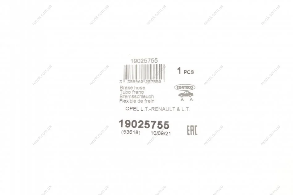 Шланг гальмівний (передній) Renault Trafic/Opel Vivaro 01- CORTECO 19025755 (8200003478, 7700811705, 4409164)