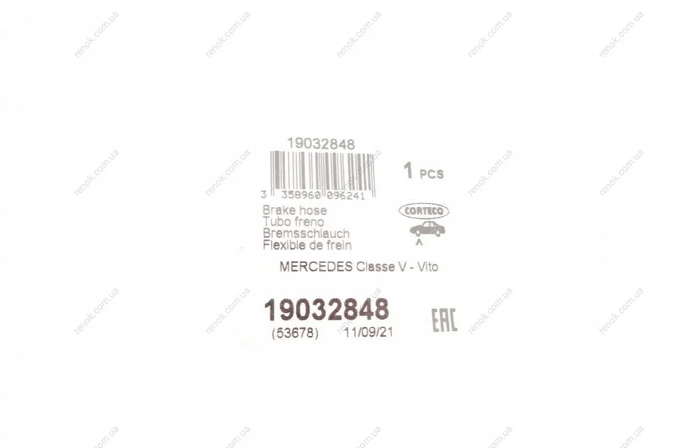 Шланг гальмівний (передній) MB Vito (W638) CORTECO 19032848 (a6384280835, A6384282235, 6384280835)