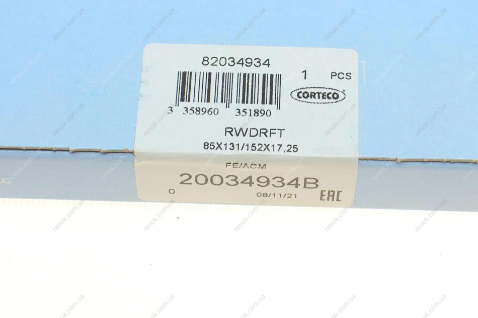 Сальник колінвалу (задній) VW Caddy 1.6/2.0TDI/T5 2.0TDI (85x131/152x17.25) CORTECO 20034934B