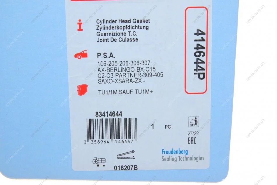Прокладка головки блоку циліндрів CORTECO 414644P (97520616, 020991, 96062537)