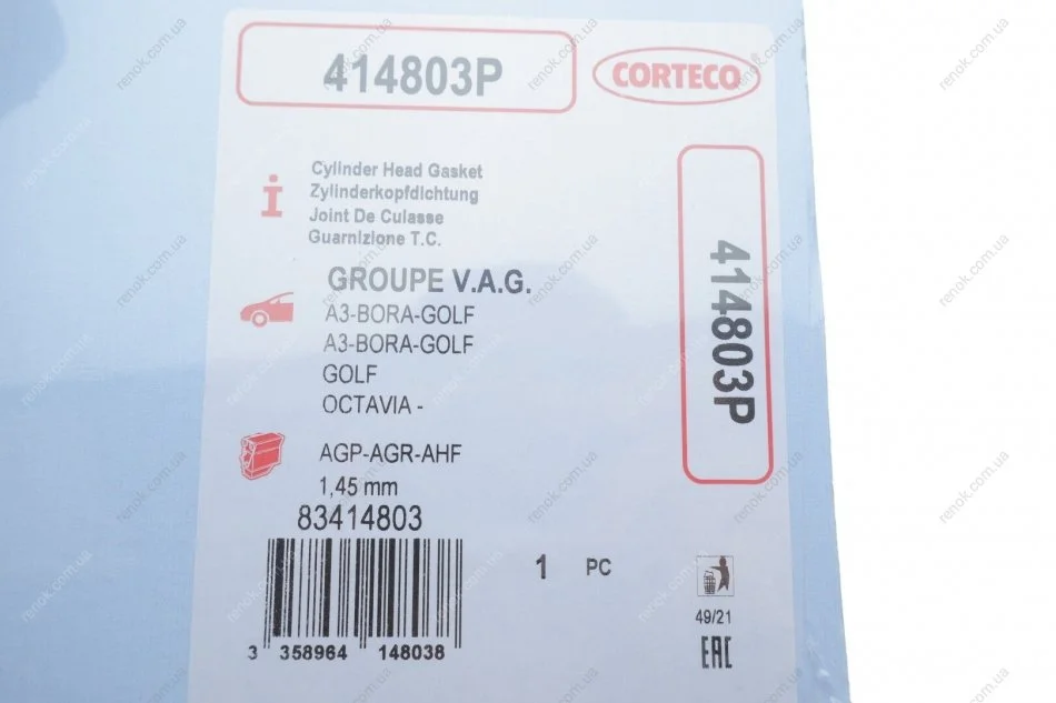 Прокладка головки блоку циліндрів CORTECO 414803P (038103383G)