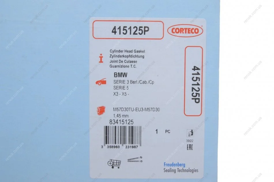 Прокладка головки блоку циліндрів CORTECO 415125P (11127788587)